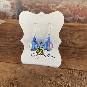 Faceted, iridescent square beads Swarovski crystals earrings, sterling, silver findings. New