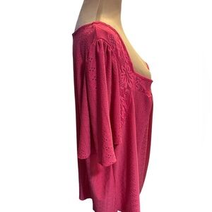 SHEIN Curve Plus Women’s Pink Square Neck Top Flowers on Neckline Size 24-26 NWT
