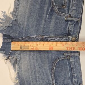 Free People Midrise Denim Frayed Hem Distressed Blue Jean Shorts Womens Size 29