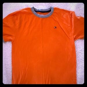 Pre-owned—Perfect Condition Tommy Hilfiger Orange Youth T-Shirt💥Grey Piping Detail on Neck and sleeves💥Youth size Medium (12-14)