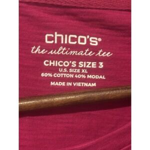 NWT Chico's Top The Ultimate Tee Scoop Neck Fuchsia Buttons Down Back Size 3 XL