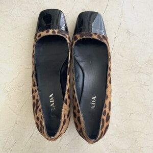 PRADA LEOPARD PRINT PONNY HAIR LEATHER AND PATENT SZ 8