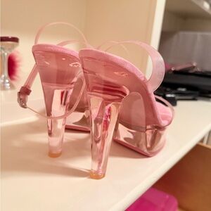 Elegant blush pink heels with clear straps. Modern and versatile style.