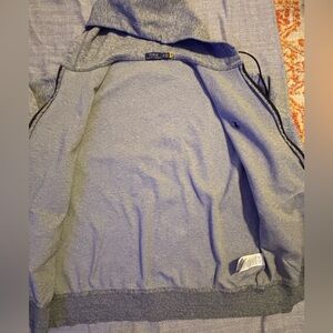Classic gray zip-up sweater by Ralph Lauren. Features a comfortable fit and iconic logo.