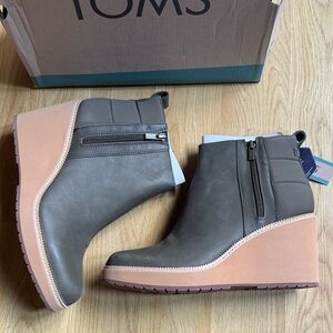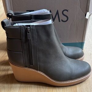 TOMS Size 10 Women's Tarmac Olive water resistant Wedge Ankle Boots