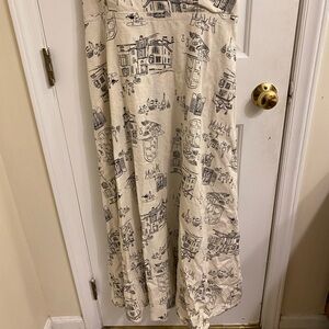 ANTHROPOLOGIE BY THE RIVER LINEN MAXI DRESS PARIS CAFE BEIGE & BLACK SIZE LARGE