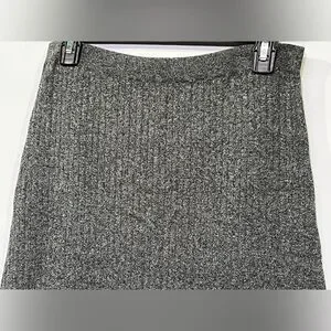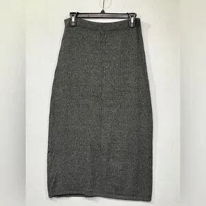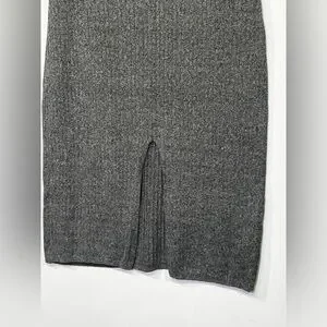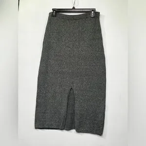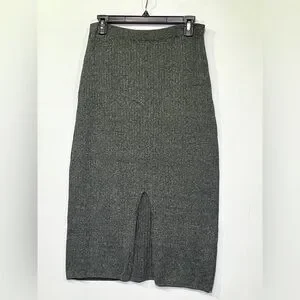 Gray heather ribbed knit pencil skirt from FREE PEOPLE, size L. Skirt has front slit and elastic waist.