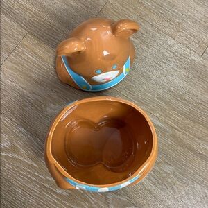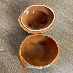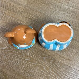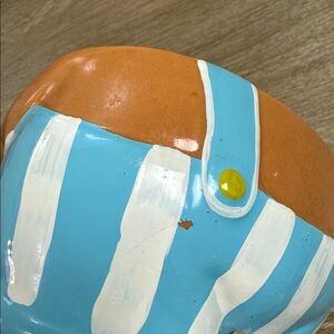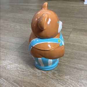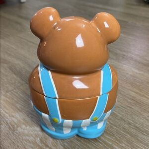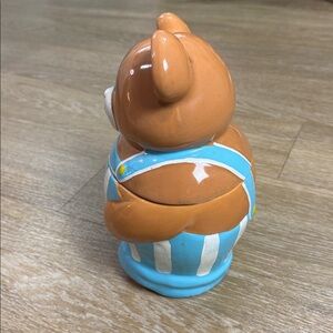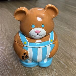 Vintage Teddy Bear Blue Striped Overalls Ceramic Cookie Jar Cottage Core