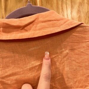 Elevate your wardrobe with this stylish orange button-up top. Perfect for any occasion, this top offers a comfortable fit and a chic look.