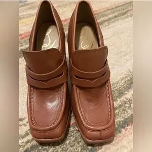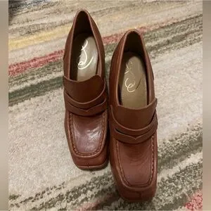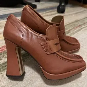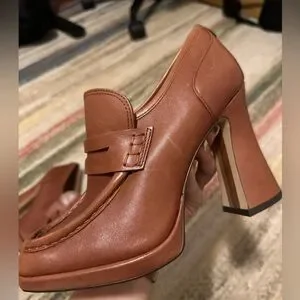 Stylish brown heeled loafers. Sleek design with a chunky heel. Perfect for any occasion.