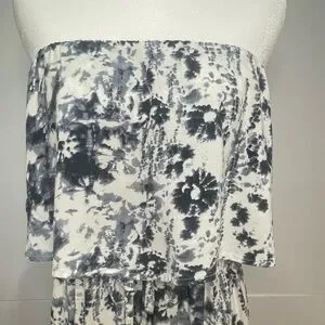 Japna Blue Gray and White Strapless Sundress Resort Wear