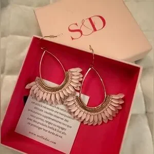 NIB Stella & Dot Pink Feather Teardrop Earrings