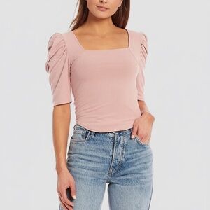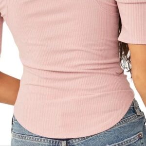 Free People NIGHT LILY PUFF SHOULDER RIBBED TOP