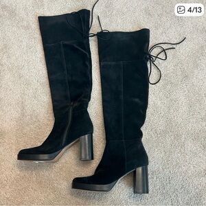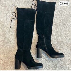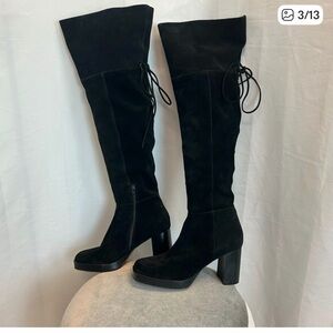 Free People Black Suede Echo Platform Over The Knee Boots Sz 41