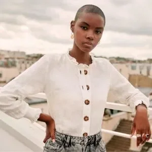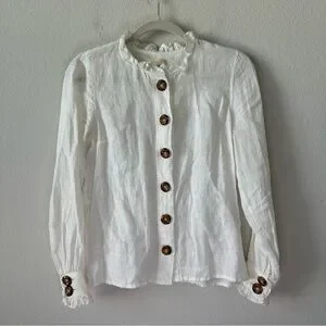 Sezane Khalie Linen White Button Down SZ EUR 36, US 4, S