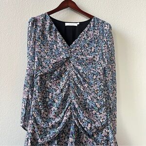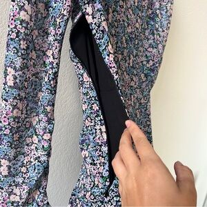 Absolutely gorgeous ditsy floral print dress! Easily dressed up or down, featuring a slight high low hem line with a short center slit. Shoulders have a slight puff to them and sleeves are unlined and slightly sheer!