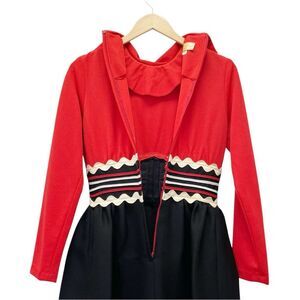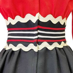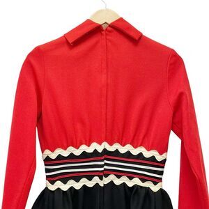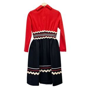 Vintage 1960s Howard Wolf Strawberry Button Ric-Rac Dress Black Red Ivory Size 4