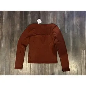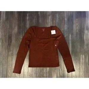 American Eagle Women Ribbed Long Sleeve Square Neck Top NWT Size L