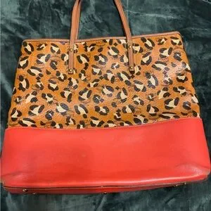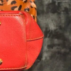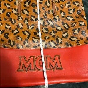 Stylish MCM tote bag featuring a bold leopard print and vibrant red accents. Perfect for adding a touch of luxury to any outfit. Has signs of wear including stains and rubs. Please check photos carefully. She still had plenty of life left, just needs a good cleaning! Dimensions in photos.