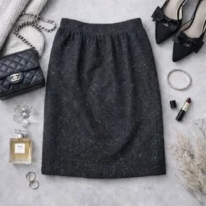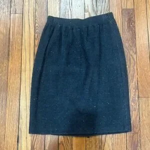 St John Collection Marie Gray Black Metallic Sparkle Knit Skirt Size 4 Vintage