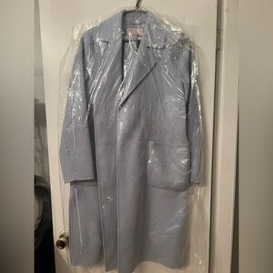Elegant light blue trench coat. Perfect for any occasion. Classic design with a modern touch.