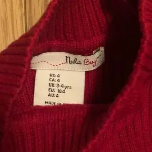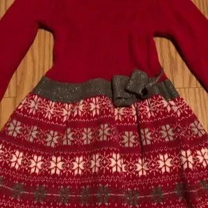 Cozy red knit dress featuring a charming snowflake pattern. Perfect for festive occasions.