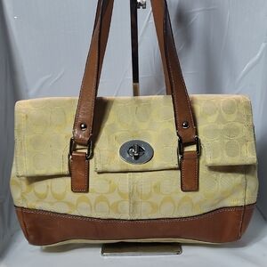 Coach VTG Hampton Signature satchel bag, yellow color