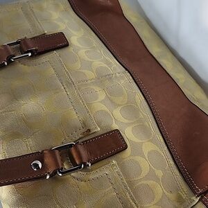 Pre-owned Chic Coach shoulder bag in yellow and brown. Features elegant design with sturdy straps. Ideal for everyday use.
