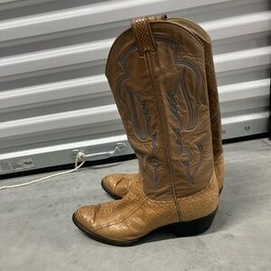 Vintage Larry Mahan Snakeskin Leather Upper Cowboy Boots