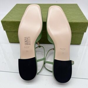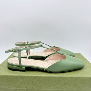GUCCI Women Ballet Flat DOUBLE G INTERLOCKING LOGO Slingback Green Leather EU 36