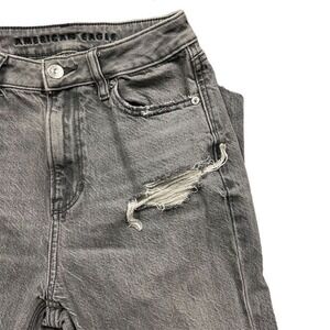 Keywords: American Eagle, Mom Jeans, gray jeans, high-rise jeans, distressed jeans, casual jeans, trendy jeans, women's jeans, straight leg jeans, comfortable jeans, weekend wear, casual Fridays, brunch outfit, cotton jeans, elastane jeans.