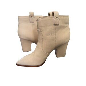 Sam Edelman Niomie Leather Western Booties Ivory Cream 3.5" Heel Size 7