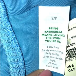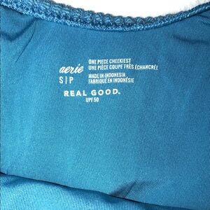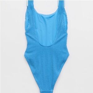 Aerie Vibrant Blue Shimmery Crinkle Birthday Scoop One-Piece Swimsuit Sz S (S2)