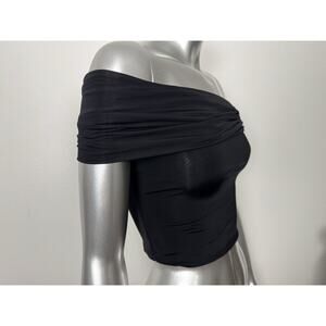 Meshki Seashell Crop Top Women’s XS Black Gold Statement Off Shoulder