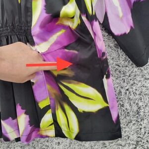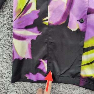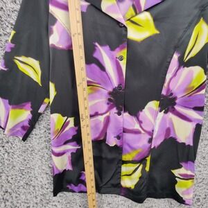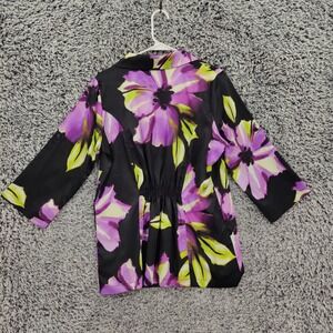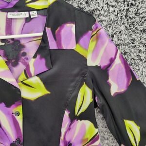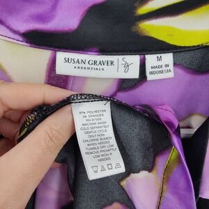 Susan Graver Women Floral Art to Wear Button Down Top M Black Purple 3/4 Sleeve