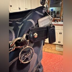 Coach Blue leather trim and silver canvas bag like new