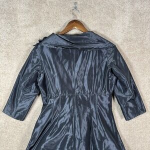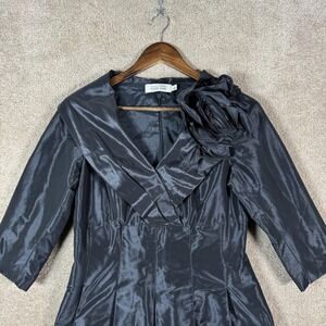 Teri Jon Dress Womens 8 Black Satin Fit Flare 3/4 Sleeve Floral Applique Formal