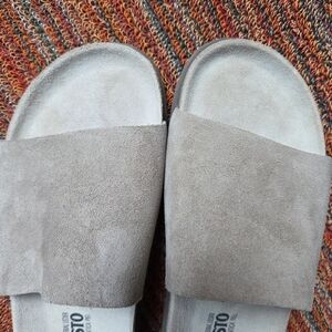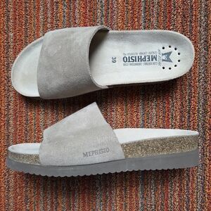 Mephisto NWOT Hanik Beige Suede Slides Sandals Mules Size 39 Warm Grey Beige