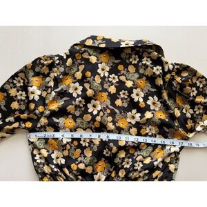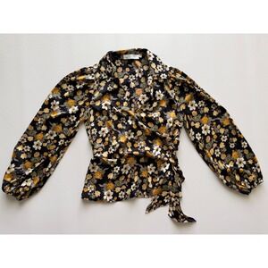 ASTR The Label Women's Black Yellow Floral Asymmetrical Collared Wrap Top Size M