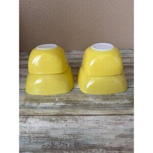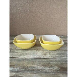 Vintage Pyrex Yellow Square Hostess Bowls 407 and 410 Set of 4 USA