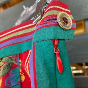 Featuring a stunning red and green floral design, this high-quality skirt was made in Austria by Geiger. Perfect for adding a pop of color to your wardrobe.