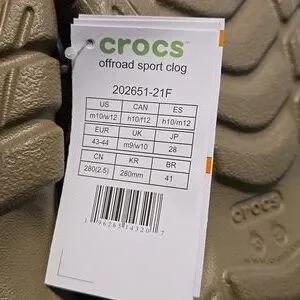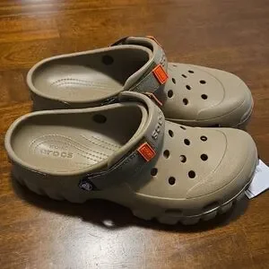 Crocs Off Road Sporr Clogs new with tags. Size 9 men & 10 women Clog is dark tan, strap is olive green with bright orange.