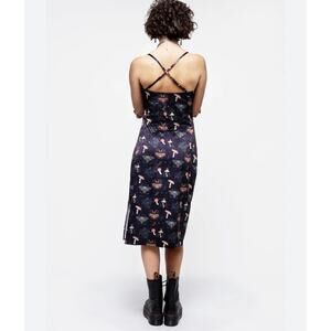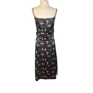 Disturbia Medeina Print Cowl Neck Satin Slip Dress S Fairy Mushroom Moth Cottage