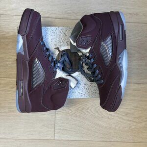 The iconic Air Jordan 5 Retro SE "Burgundy" (DZ4131-600) from the 2023 release โ a premium comeback of the 2006 Lifestyle colorway. Full deep burgundy suede upper (that perfect marron-rouge vineux tone, brown-red luxury feel), metallic silver accents on the tongue & lining, translucent grey netting, grey Jumpman lace locks, shark teeth midsole, and icy blue translucent outsole. Autumnal premium vibes, super clean and understated hype. Perfect for fall/winter streetwear, collectors, or low-key flex. Deadstock/BNWT (or specify your condition), size [add your size, e.g. US 12 / EU 46 โ fits true to size]. Authentic retail pair, no fakes here. Grab this grail before it's gone! ๐ท๐