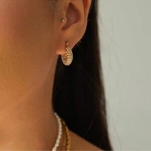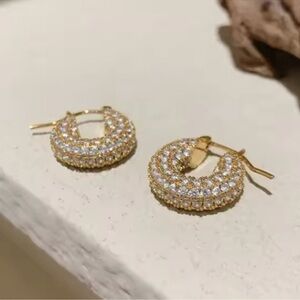 Gold Crystal Pave White Diamonds CZ Hoop Earrings
