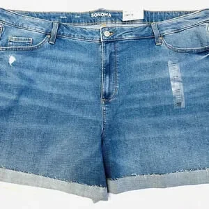 NWT SONOMA Women High Rise Blue Rolled Cuff Distressed Blue Jean Shorts Size 24W