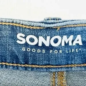 NWT SONOMA Women High Rise Blue Rolled Cuff Distressed Blue Jean Shorts