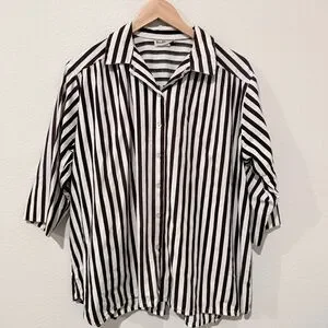 Boutique Oversized Boxy Bold Striped Button Down Coastal Minimalist Resort Retro