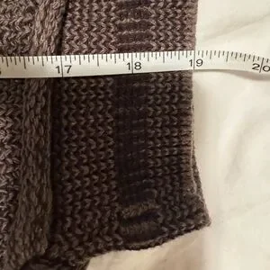 • Condition: Good pre-owned condition. Note: There is a small area of minor snagging/loose yarn near the shoulder (see last photo), which is common with this chunky knit style and easily tucked.