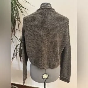 The ultimate cozy staple! This BDG (Urban Outfitters) knit sweater features a heavy, chunky ribbed texture in a gorgeous mottled charcoal/brown earth tone. It has a modern boxy, slightly cropped silhouette with dropped shoulders for that effortless oversized look.
